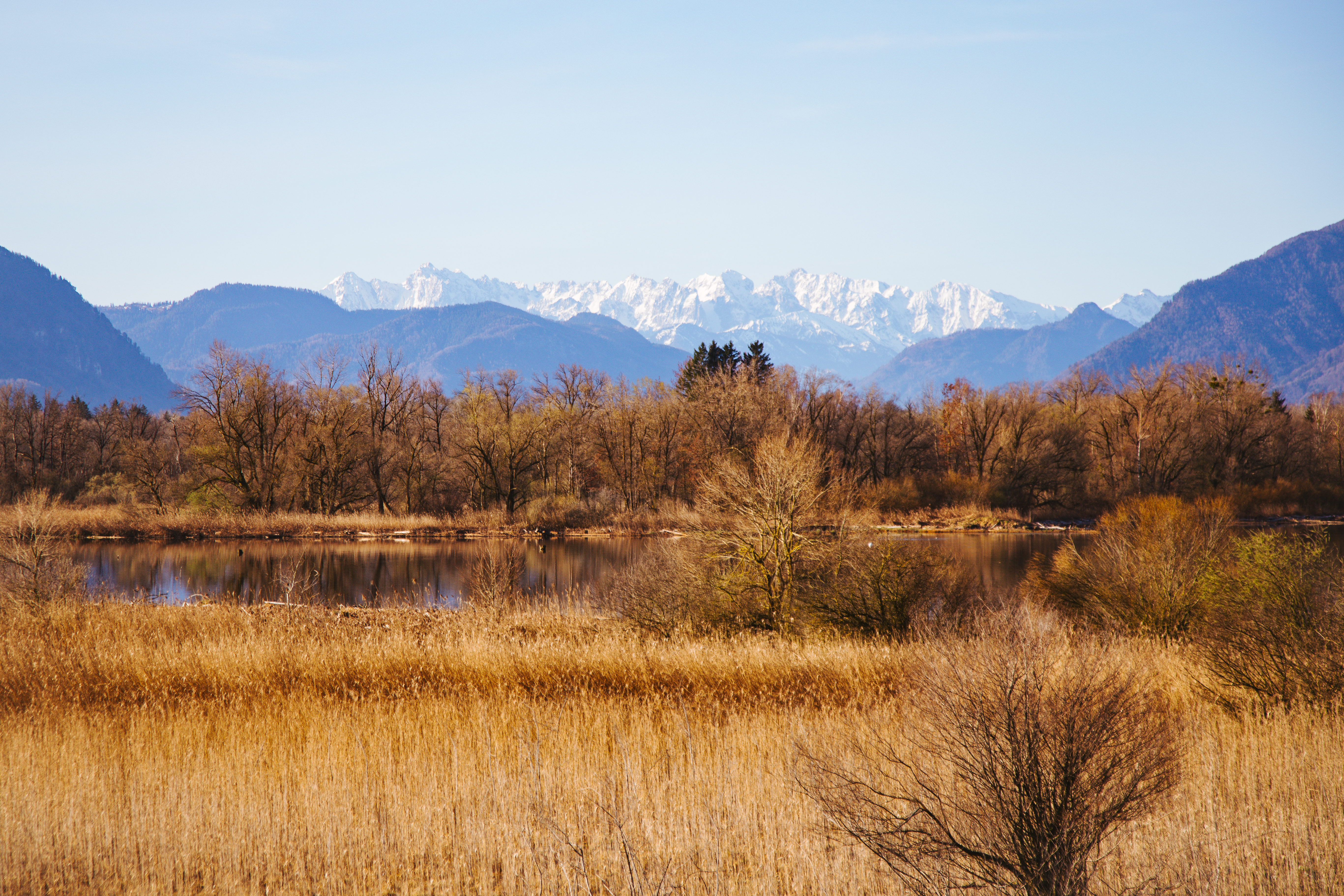The landscape that lies before me today is the Bavarian Sea. At 8,000 hectares, Lake Chiemsee is the largest lake in Bavaria and, like most of the other Alpine lakes, was formed around 10,000 years ago during the last ice age. The delta of the Tiroler Achen is the only naturally developing inland delta in Central Europe. The observation tower where I have made myself comfortable for the morning – in the hope of spotting a kingfisher – is located right in the middle of this unique landscape.
