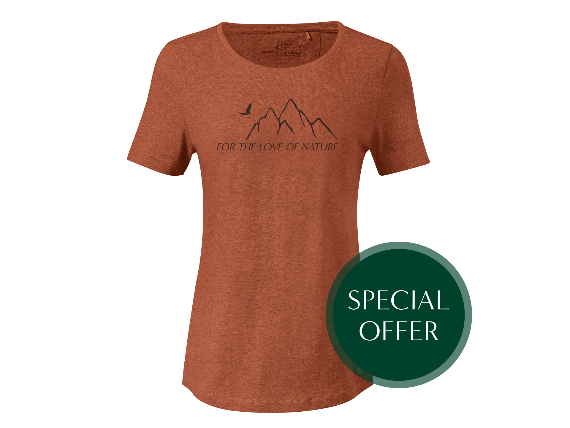 Anyone who spends a lot of time in the great outdoors knows the value of comfortable clothing. This crew neck T-shirt is made from 100% organic cotton and feels very comfortable to wear. The T-shirt is mottled orange and has a print on the front featuring a mountain range in black and the words “For the love of nature.”