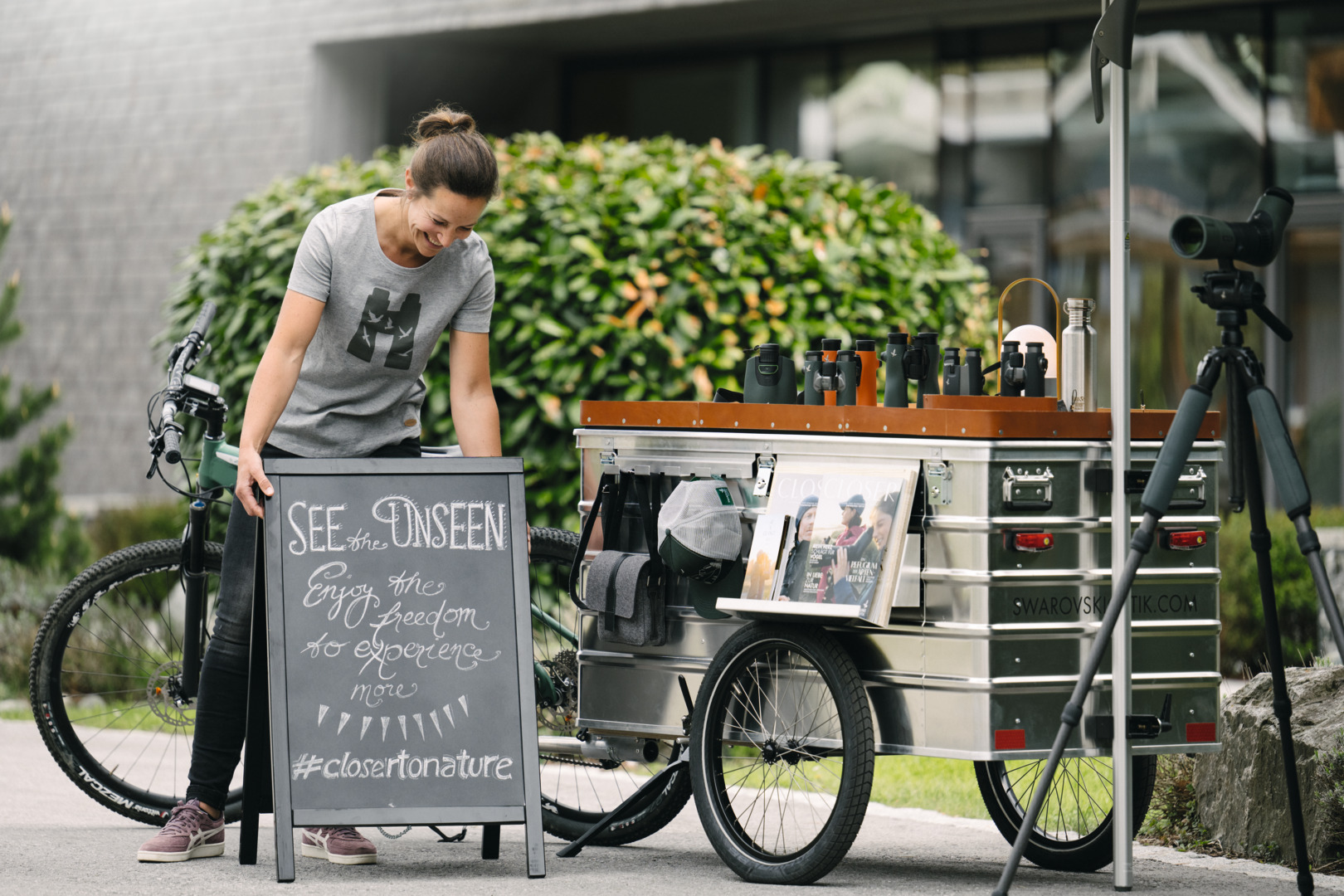 Mais comment partager cette expérience avec autant de personnes que possible ? Nous savions qu’il était temps pour nous d’interagir directement avec les personnes et de nous aventurer, avec nos jumelles et nos longues-vues d’observation, dans leur habitat naturel : le grand air.