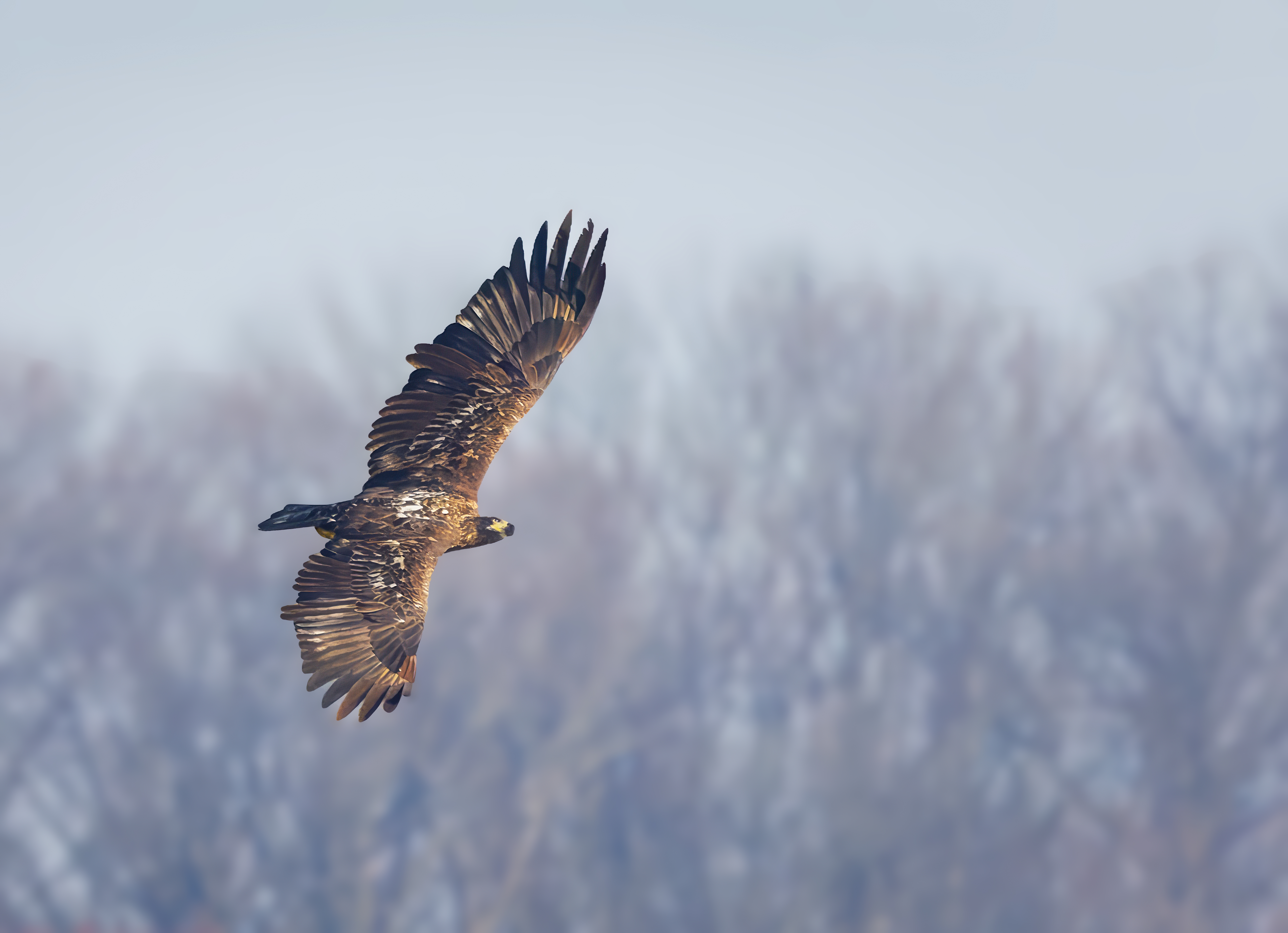 My favorite place to experience migration is Conowingo Dam. This dam supports a 9000-acre reservoir, with an abundance of fish in accessible, shallow waters. One of the largest raptors in the world is clever and recognizes the potential for plentiful food here. With up to an 8ft (2.3m) wingspan, the Bald Eagle is the national bird of the United States, chosen to represent strength and freedom.