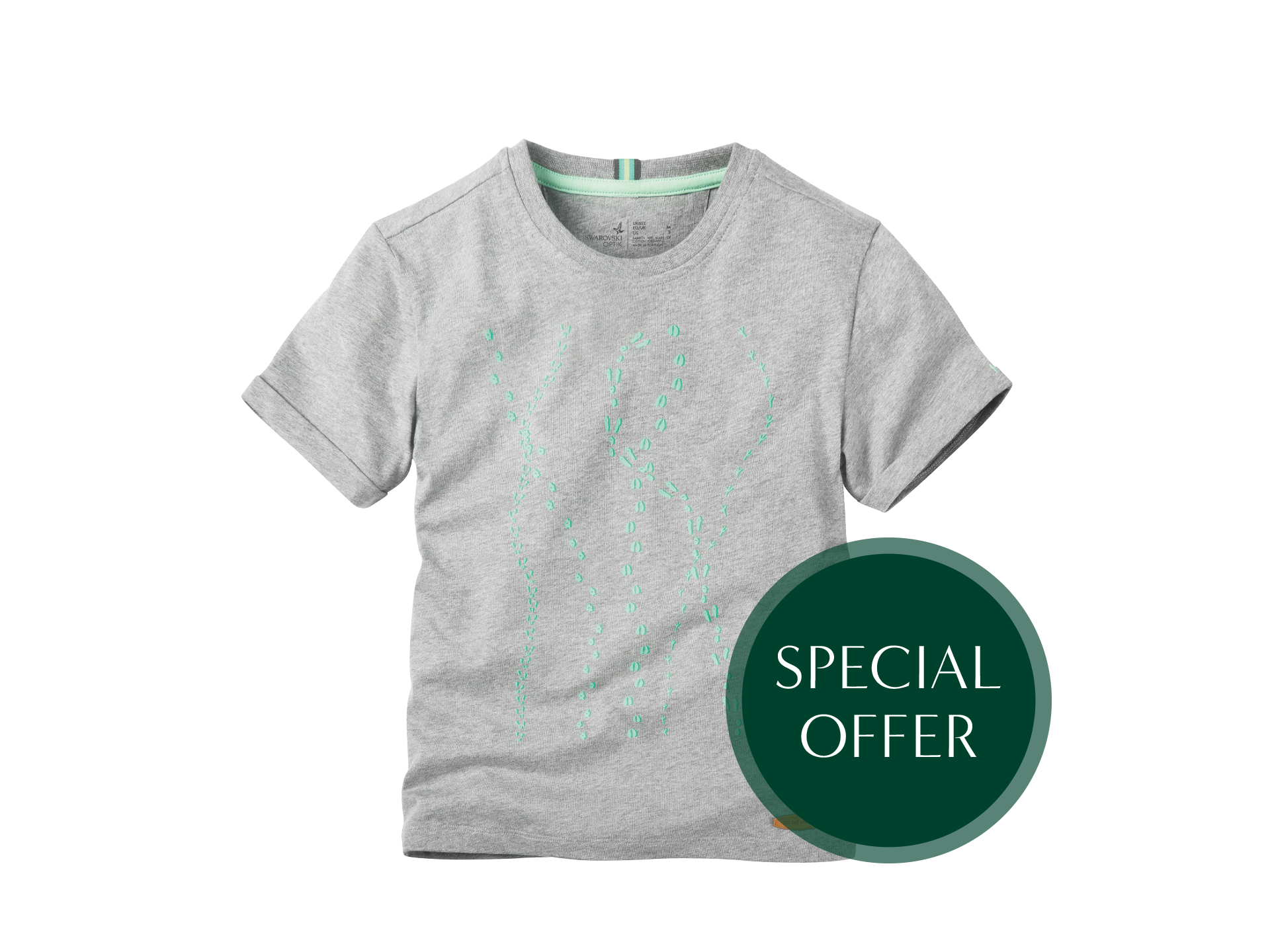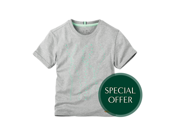 Des vêtements adéquats sont essentiels pour une sortie en famille parfaite. Pour assurer aux passionnés de nature de demain de se sentir à l’aise pendant leurs aventures, ce T-shirt en coton 100 % biologique est très doux sur la peau. Sa coupe ample et son col ras du cou offrent un confort supplémentaire, laissant beaucoup d’aisance pour suivre les traces d’animaux. Qui sait quels animaux ont laissé des traces sur le T-shirt ?