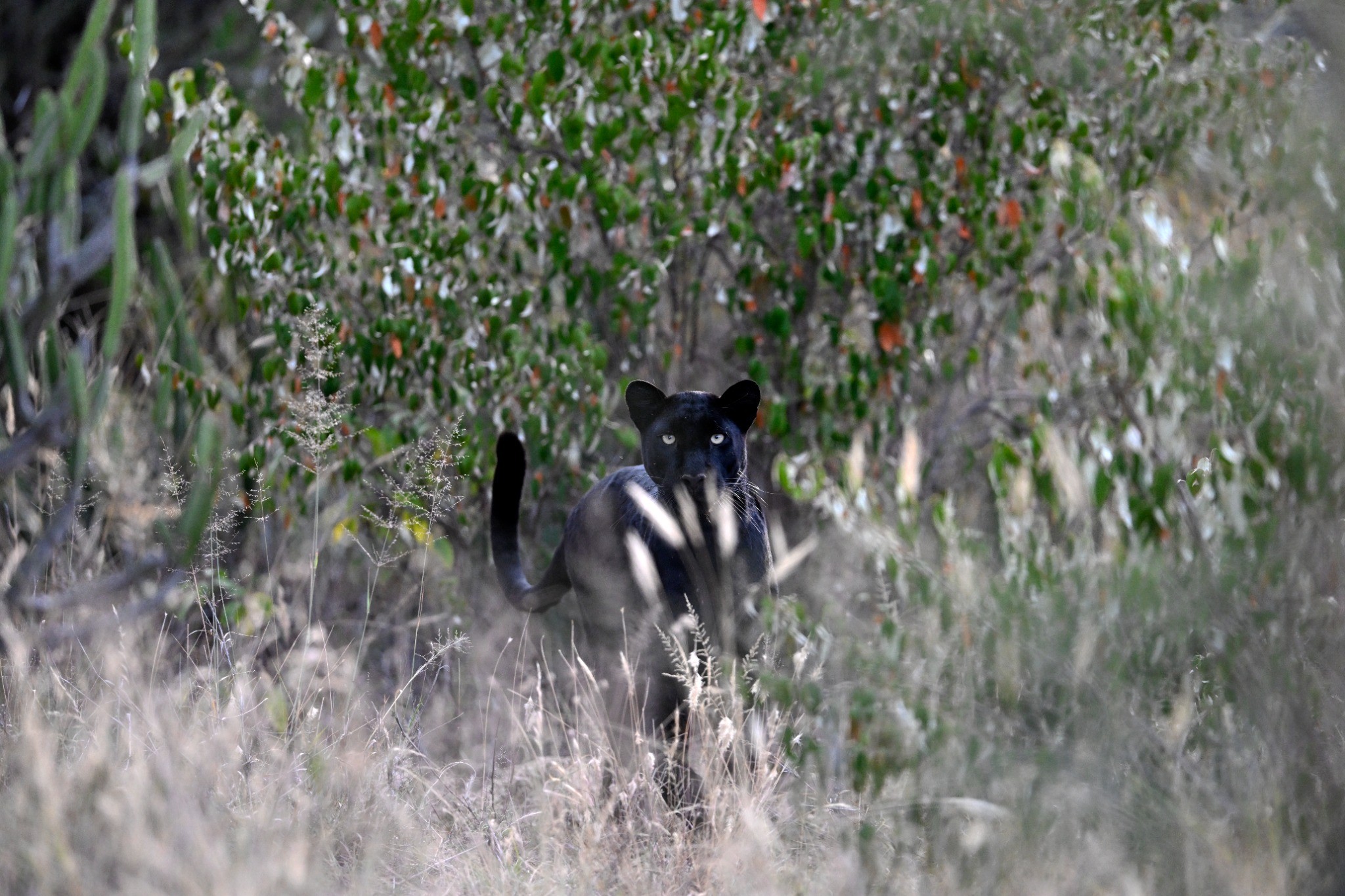 In 2025 we returned full of hope, but she kept the cubs well hidden on a neighboring property and only crossed into her usual hunting area for short periods. We had some beautiful sightings, but no cubs. Word was that they were both golden-coated, one male and one female. A melanistic mother raising two normal-colored cubs. The rarity of that was almost hard to process.
