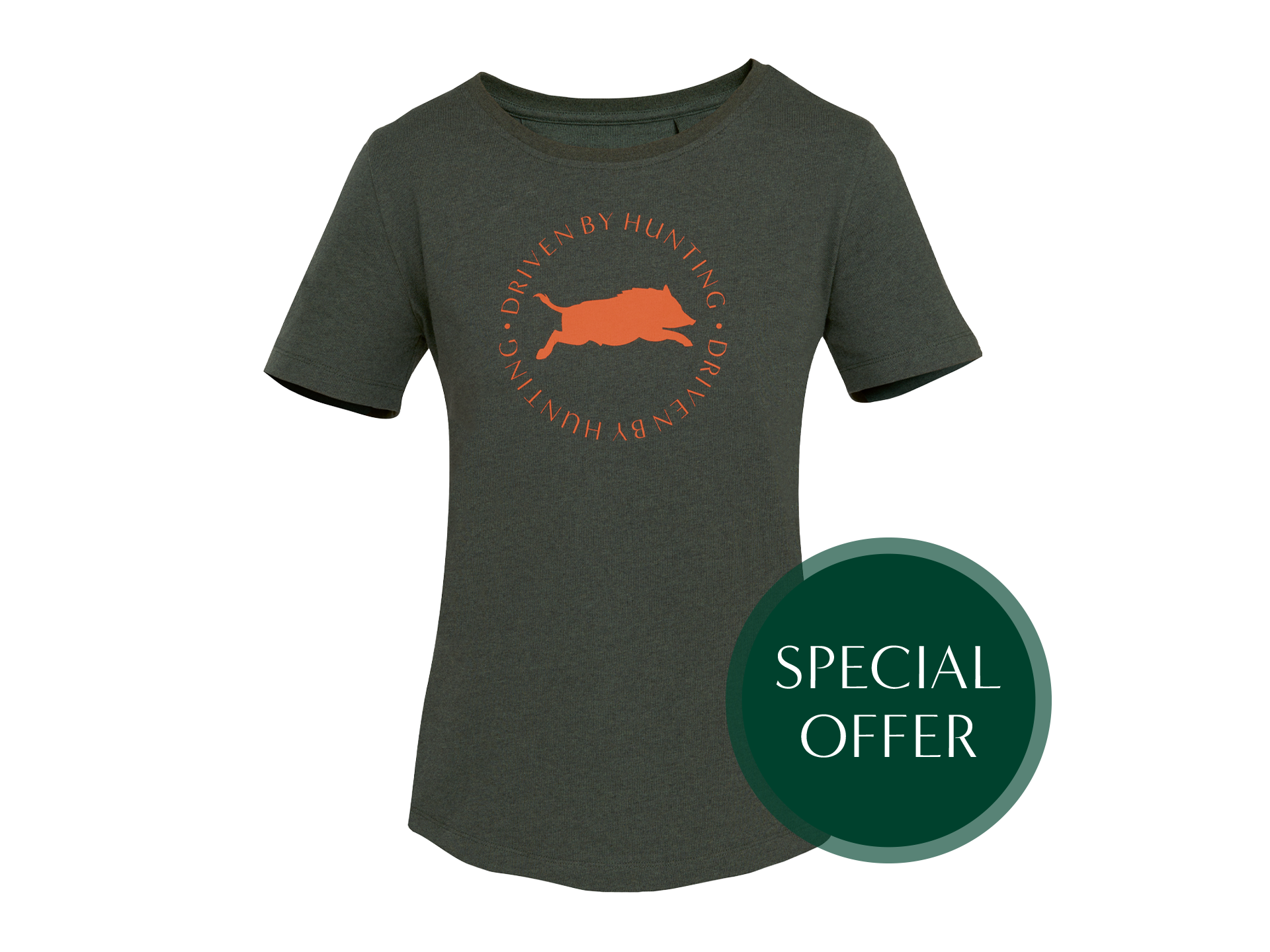 Anyone who spends a lot of time in the great outdoors knows the value of comfortable clothing. This crew neck T-shirt is made from 100% organic cotton and feels very comfortable to wear. The T-shirt is dark green with a wild boar print in burnt orange on the front.